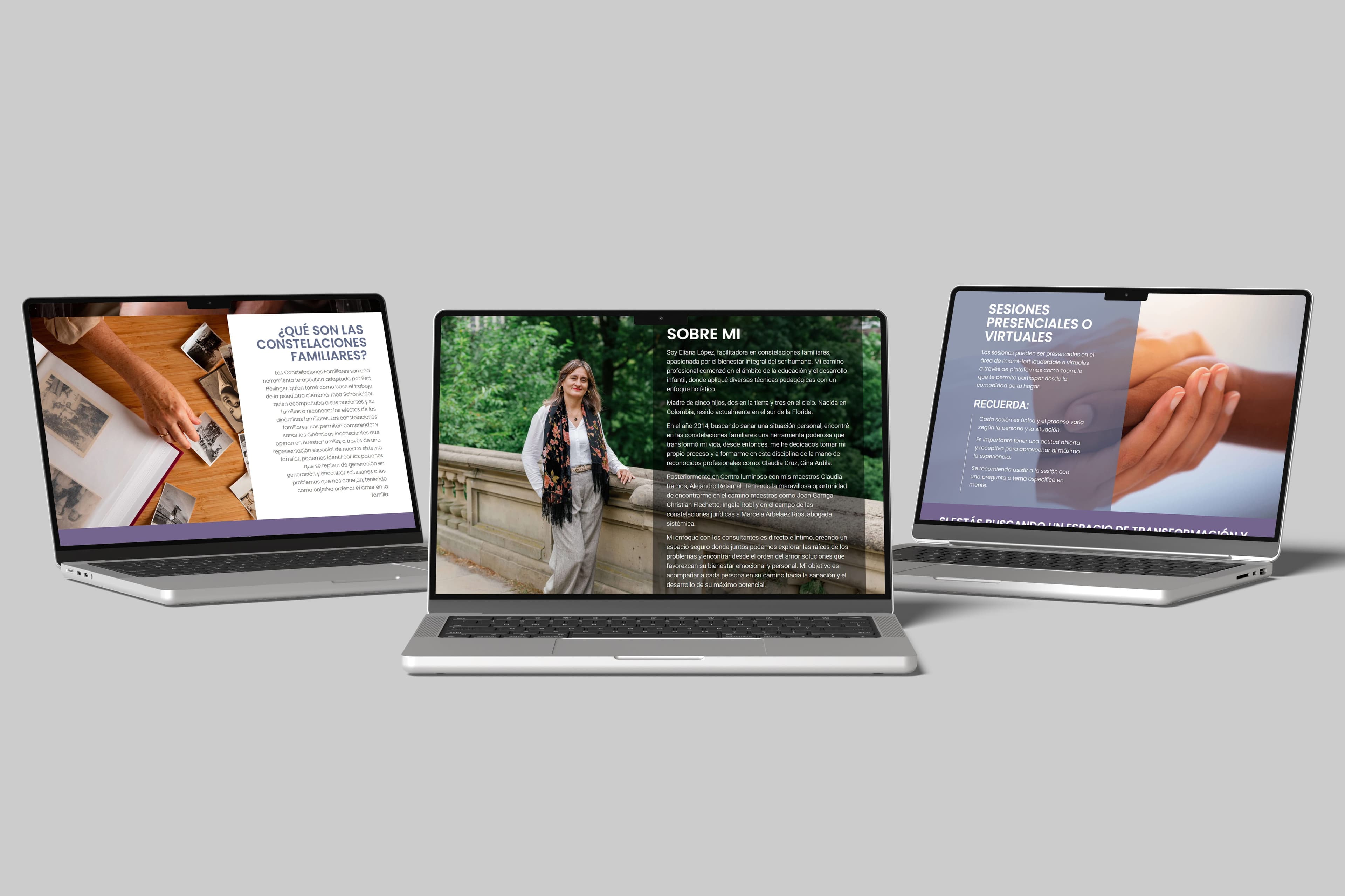 Through thoughtful development and a user-experience-focused approach, we created the Eliana López Constelaciones Familiares website as a serene and intuitive space that reflects the practice’s values of healing, connection, and clarity. The design emphasizes easy navigation and clear information about family constellations therapy, ensuring accessibility for visitors. The site offers a seamless experience, allowing users to explore services and easily get in touch with Eliana for both in-person and virtual sessions.